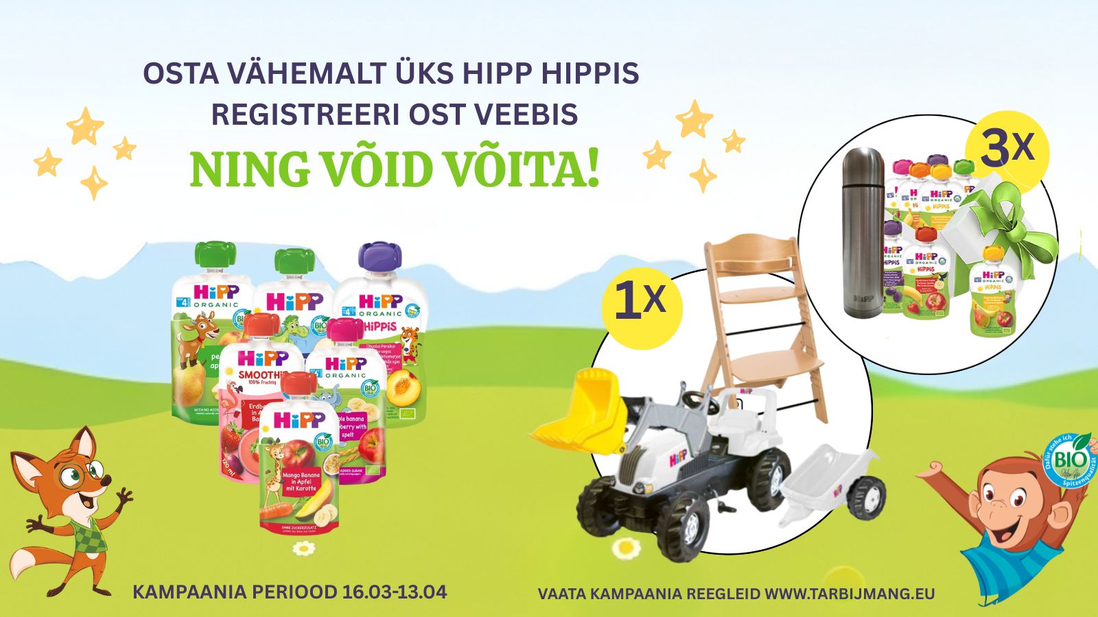 Osta vähemalt 1 HiPP HIPPIS toode, registreeri ost veebilehel ja võid võita!